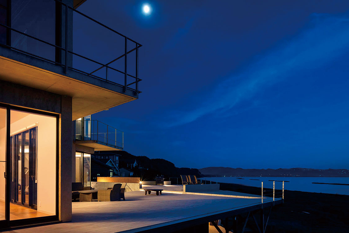ウッドデッキから眺める、息をのむような美しい夕焼けの海、その海の向こうに見える富士山は、本当に一幅の絵の中にいるかのような幻想を与えてくれます。夕暮れのウッドデッキに静かに佇んでいるだけで、一日の疲れがスーッと取れていきます。